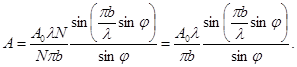 Для знаходження результуючої амплітуди від всіх смуг, яка буде збуджуватися в точці М (рис.3), використаємо формулу результуючої амплітуди при інтерференції багатьох хвиль