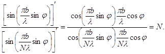в) Побічні мінімуми дифракції на дифракційній решітці одержуємо із умови коли чисельник формули (25) буде найменшим, тобто коли