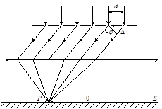 на екрані приходять промені від усіх щілин. Всі ці промені зсунуті по фазі на однакову величину
