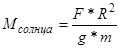 Н. Таким образом, масса Солнца = (0,028*1024 Н * 22500000 м2)/ (6.67·10-11 Нм2/кг2 * 5.9*1024кг) = 1 989 100*1024 кг.