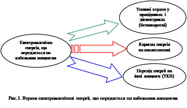 При передачі кабельними ланцюгами (колами) частка електромагнітної енергії розсіюється у самій лінії, головним чином на теплові втрати у провідниках і діелектриках; частка надходить у навантаження, а частка переходить на сусідні ланцюги (рис.1). Перехід електромагнітної енергії з одного ланцюга на інший є одним з можливих шляхів витоку інформації, в тому числі і конфіденційної, тобто з`являється технічний канал витоку інформації.