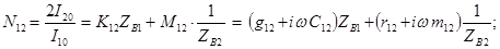 Модулі електромагнітного зв`язку між двохпровідними ланцюгами (для низькочастотних високоомних кабелів) на ближньому та дальньому кінцях можуть бути визначені за наступними відношеннями:
