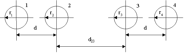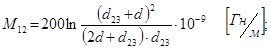 Коефіцієнти ємнісного і індуктивного зв`язків між двома не скрученими двохпровідними симетричними ланцюгами, розташованими згідно з рис. 4, при однакових радіусах струмонесучих провідників (![]()