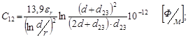 Коефіцієнти ємнісного та індуктивного зв`язків для нескручених однопровідних ланцюгів, розташованих згідно з рис. 6, визначаються за наступними формулами: