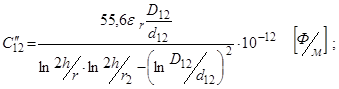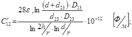 Коефіцієнти ємнісного та індуктивного зв`язків для нескручених одно- та двохпровідних ланцюгів, розташованими згідно з рис. 5, (при ![]()