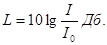 Для сравнения интенсивности Lзвука или звукового давления используют уровень интенсивности. Уровнем интенсивности называют умноженный на 10 логарифм отношений двух интенсивностей звука. ВеличинаLизмеряется в децибелах.