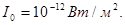 Для указания абсолютного уровня интенсивности вводят стандартный порог слышимости І0человеческого уха на частоте 1000 Гц, по отношению к которому указывается интенсивность. Порог слышимости равен: