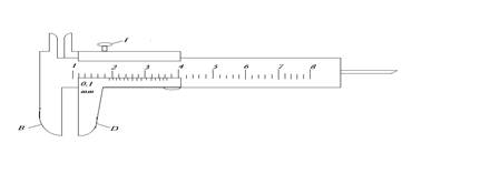 1. Цилиндр помещают между ножками В и Д штангенциркуля (слегка зажав ножки) и закрепляют винт.