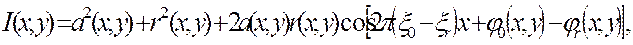 где а(x,y) и а(x,y) -изменения амплитуд объектной и опорной волн, а φ0 (x, у) и φг (x, у) — изменения фаз объектной и опорной волн соответственно. Параметры ξ0 и ξг определяются как