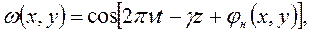 Фазовой называют голограмму, которая модулирует фазу восстанавливающей волны таким образом, что результирующая волна имеет относительный сдвиг фазы, пропорциональный величине, описываемой выражением (1); иными словами, волну можно представить в виде функции ω(x, y), записываемой как