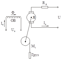 Рис. 1.3. Структурная схема нагружения двигателя постоянного тока для постоянного момента нагружения