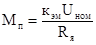 Положив в выражение для механической характеристики w=0 и R=Rя , U=Uном , получим пусковой момент