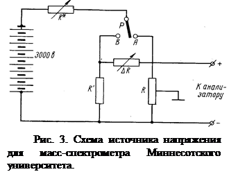 Из зарубежных масс-спектроскопов с двойной фокусировкой наиболее точным является новый масс-спектрометр Нира – Робертса с двойной фокусировкой и новым методом регистрации ионов (рис. 2.1). Он имеет 90-градусный электростатический анализатор с радиусом кривизны Re =50,8 см и 60-градусный магнитный анализатор с радиусом кривизны оси ионного пучка