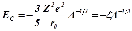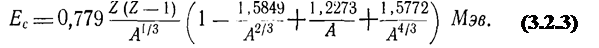 Четвертый, кулоновский, член формулы (3.1.9) также был исправлен в связи с трапецеидальным распределением плотности ядра. Выражение для кулоновского члена имеет вид