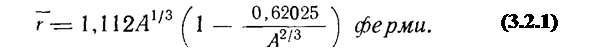 можно принять расстояние от центра до точки, где плотность убывает вдвое (см. рис. 3.2.1). В результате обработки опытов Хофштедтера. Камерон предложил такую формулу для среднего радиуса ядер: