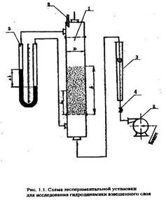 Цель работы : получение экспериментальной и расчетной зависимостей гидравлического сопротивления слоя ΔР, высоты слоя h и порозности ε от скорости газа ωкр ; проверка основного уравнения взвешенного слоя.