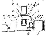 3) малые габариты печей, позволяющие поместить их в закрытые камеры и вести плавку в вакууме или в атмосфере инертного газа;