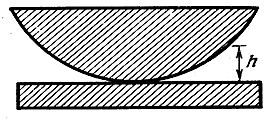 Количественные исследования в этой области трудны, так как толщина споев – порядка 1/1000 мм. Нужно измерять такие малые толщины. Соответственных устройств для этого тогда небыло. Ньютон обходит трудность этого измерения замечательным приемом. На плоскую стеклянную поверхность он кладет выпуклой стороной плоско-выпуклую линзу - объектив телескопа с очень большим радиусом кривизны (рис. 1). Тогда между нижней плоской и верхней выпуклой поверхностями образуется чрезвычайно тонкий слой воздуха, обнаруживающий пестрые яркие цвета; цветные кольца в белом свете и чередование одноцветных светлых и темных колец - в однородном.