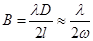 Величина В называется шириной интерференционной полосы. Интерференционная картина тем крупнее, чем меньше 2l (или ω). Угловая ширина полос интерференции: ![]()
