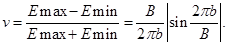 где Emax, Emin – освещённости экрана в местах максимумов и минимумов картины, т.е. в центрах светлых и тёмных полос, B=λD/2l – ширина интерференционной полосы, 2b – размеры источника. Величина v называется видимостью полос. Зависимость v=f(2b/B) показана на рис.2.