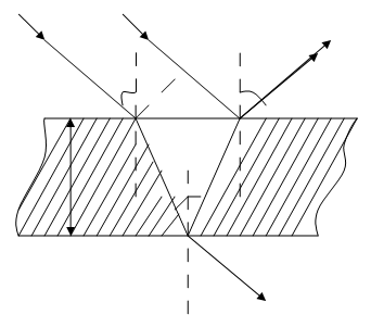 5. При интерференции на прозрачном клине полосы равной толщине параллельной ребру клина. Ширина интерференционных полос при угле падения i=0