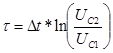 Для заряда конденсатора значение напряжение на конденсаторе имеет вид
