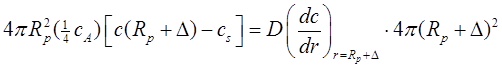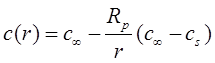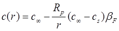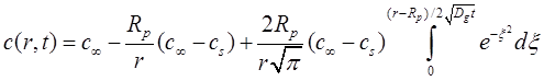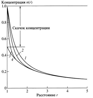 . Это соответствует скачку концентрации на поверхности частицы. Таким образом, модель оказалась чувствительной к скачку концентрации, то есть оправдывающей приближение, описанное ниже.
