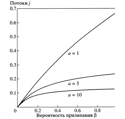 6. При малых значениях вероятности прилипания эта зависимость становится еще меньше.