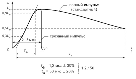Рисунок 2. Стандартный грозовой импульс и его параметры