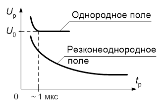 Рисунок 4. Вольт-секундные характеристики промежутков с однородным и резконеоднородным электрическими полями