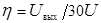 В связи с тем, что, во-первых, дальние от источника конденсаторы ГИН заряжаются до меньших напряжений, чем ближние, во-вторых, одновременно с каскадным переключением конденсаторов в последовательную схему идет процесс их разрядки на систему активных сопротивлений ГИН, величина (амплитуда) выходного напряжения в действительности будет меньше, чем 30U. Отношение амплитуды выходного напряжения установки к теоретически ожидаемому называется коэффициентом использования ГИН