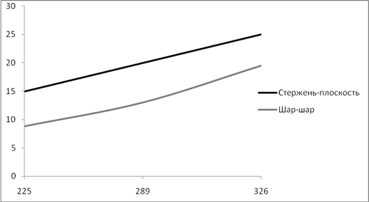 | Lстержень-плоскость, см | 15 | 20 | 25 |