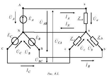 1- звезда с нейтральным (нулевым) проводом (рисунок 8.1);