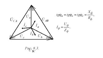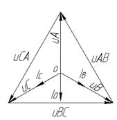 При этом векторная диаграмма для несимметричной активной нагрузки с нейтральным проводом имеет вид, представленный на рисунке 8.4