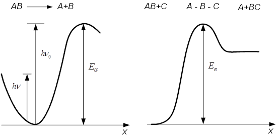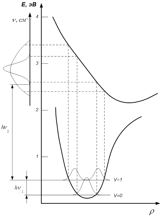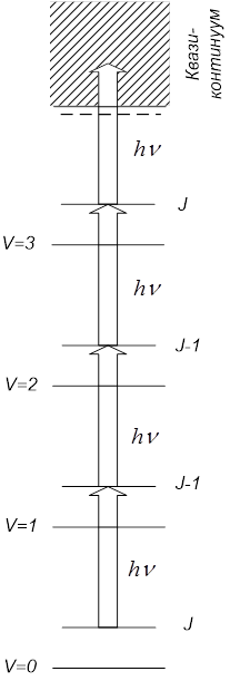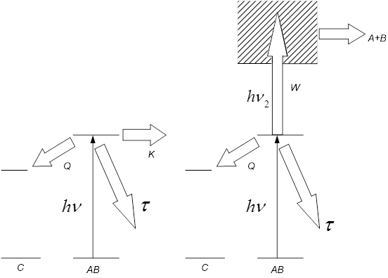 Рисунок.3. Качественная схема, иллюстрирующая модель диссоциации сложных молекул в поле ИК – излучения
