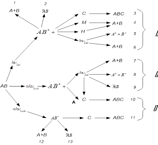 . Однако экспериментально диссоциация сложных молекул наблюдается при интенсивности инфракрасного излучения на много порядков меньшей той интенсивности, которую дают оценки, основанные на вероятности многофотонного поглощения или штарковского уширения [16].