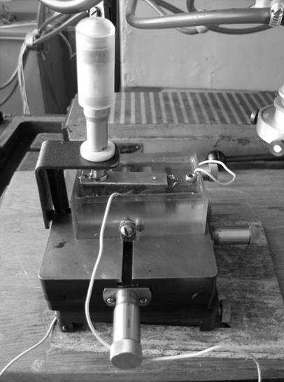 1. Экспериментальная ячейка (ЭЯ) заполнялось изучаемой жидкостью (бидистиллированная вода, спирт, трансформаторное масло) затем подавалось напряжение от 0 В. до 150 В. и мы фиксировали пробойное напряжение для данного типа жидкости, при котором начинается эрозия.
