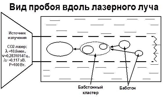 5. Проведен анализ физических процессов в области воздействия лазерного излучения на вещество, который выявил последовательность этих процессов и показал возможность получения пробоя воздействием лазерного излучения на вещество.