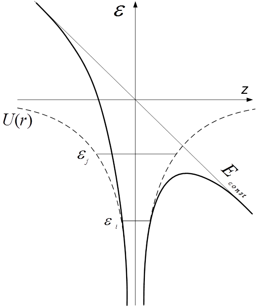 Схема образования потенциального барьера в постоянном внешнем поле Еconst ; U(r) – потенциал квантовой системы в отсутствие внешнего поля.