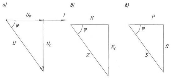 13. По результатам измерений и расчётов, построил Векторную диаграмму и треугольники сопротивлений и мощностей: