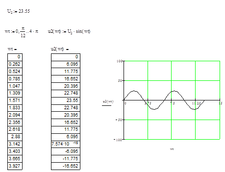 3. Рассчитать действующие значения напряжения вторичной обмотки трансформатора U2, токов обмоток трансформатора I1 и I2.