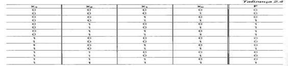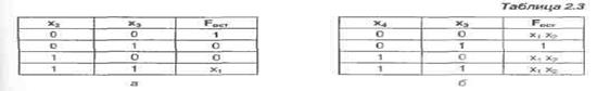 При переносе *о в сигналы настройки (алфавит настройки {О, I, *о}) требуется найти остаточную функцию, аргументами которой является вектор переменных x3x2Xi. Каждая комбинация этих переменных встречается в двух смежных строках таблицы. Просматривая таблицу по смежным парам строк, можно видеть, что остаточная функция соответствует другой таблице (табл. 2.5).