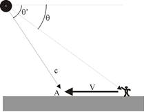 Причина отличия qотq' видна из рис 2. В системе K' наблюдатель и световой луч будут двигаться к общей точке встречи А. Только в этой точке наблюдатель увидит этот световой луч.