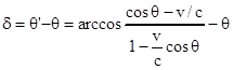 Запишем теперь угол расхождения между лучами (угол аберрации), который нам понадобится в дальнейшем: