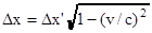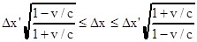Допустим, что движущийся объект это линейка длиной Dx', ориентированная вдоль вектора скорости v. Нетрудно видеть, что наблюдаемая длина линейки будет зависеть от v и q. Кажущаяся длина линейки: