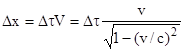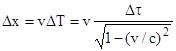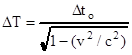 где ΔТ это наблюдаемое в системе К время между двумя вспышками, определенное с помощью преобразования Лоренца
