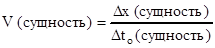 Истинная скорость V системе К определяется отношением двух "сущностей": реального пути, пройденного частицей в системе отсчета наблюдателя[2] к интервалу времени, единому для всех ИСО, за который этот путь пройден. Это инвариантный отрезок Δx и инвариантный интервал времени Δto .