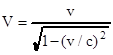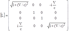 Теперь мы можем записать новую форму матрицы Лоренца, выразив кажущуюся скорость v в этой матрице через истинную скорость V.
