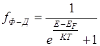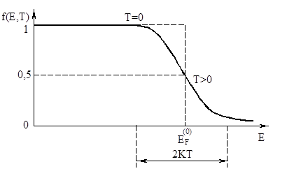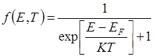 Функция f(E,T) называется функцией Ферми. Эта функция определяется вероятностью того, что квантовые состояния с энергией Е заняты частицами при заданной температуре Т. По её смыслу её не может быть больше единицы.