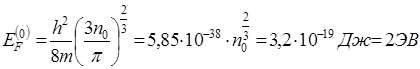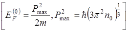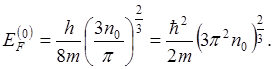 концентрации частиц n0 и от температуры Т, а значение энергии Ферми при абсолютном нуле температуры (здесь и далее абсолютный нуль температуры понимается как предел Т=>0, имеется в виду, что абсолютный нуль недостижим)